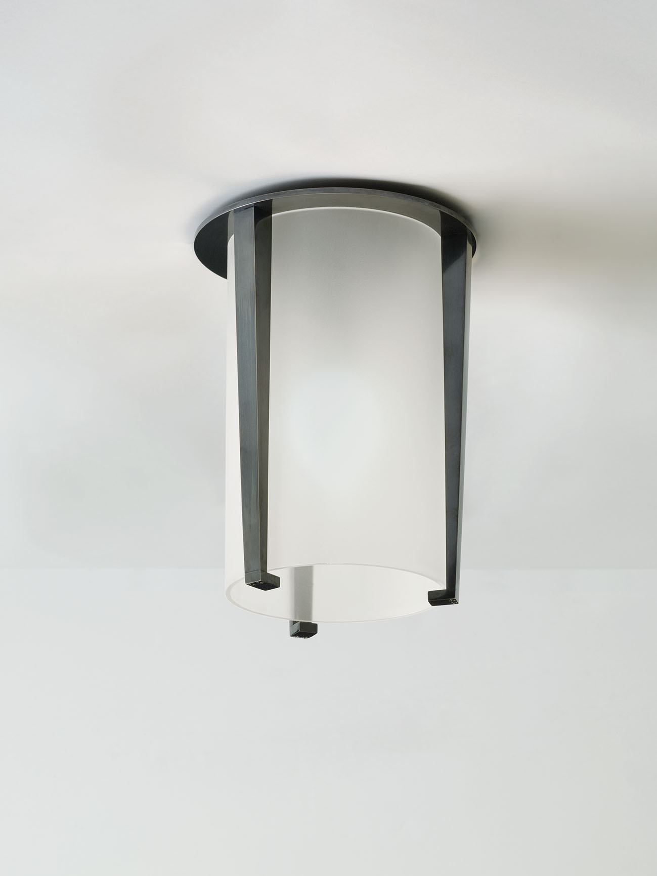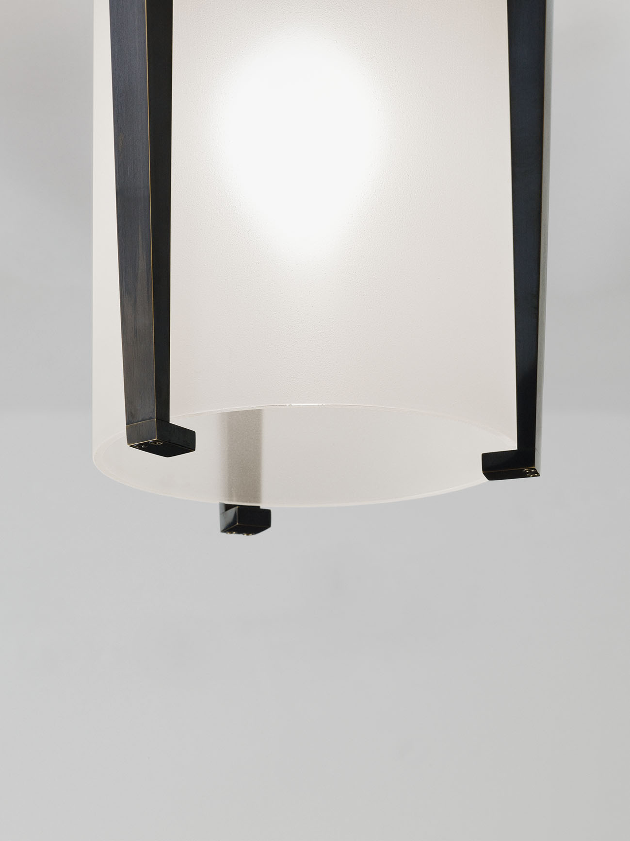 A compact, sophisticated form, the Capello Ceiling Fixture reimagines a stylish Art Deco design by French architect and interior designer Paul Dupré-Lafon. The frosted glass shade, encased in Lazy Butler Antique Brass, softly filters the light, providing illumination and eliminating glare. It measures 10.375” in diameter and 14.375” high.