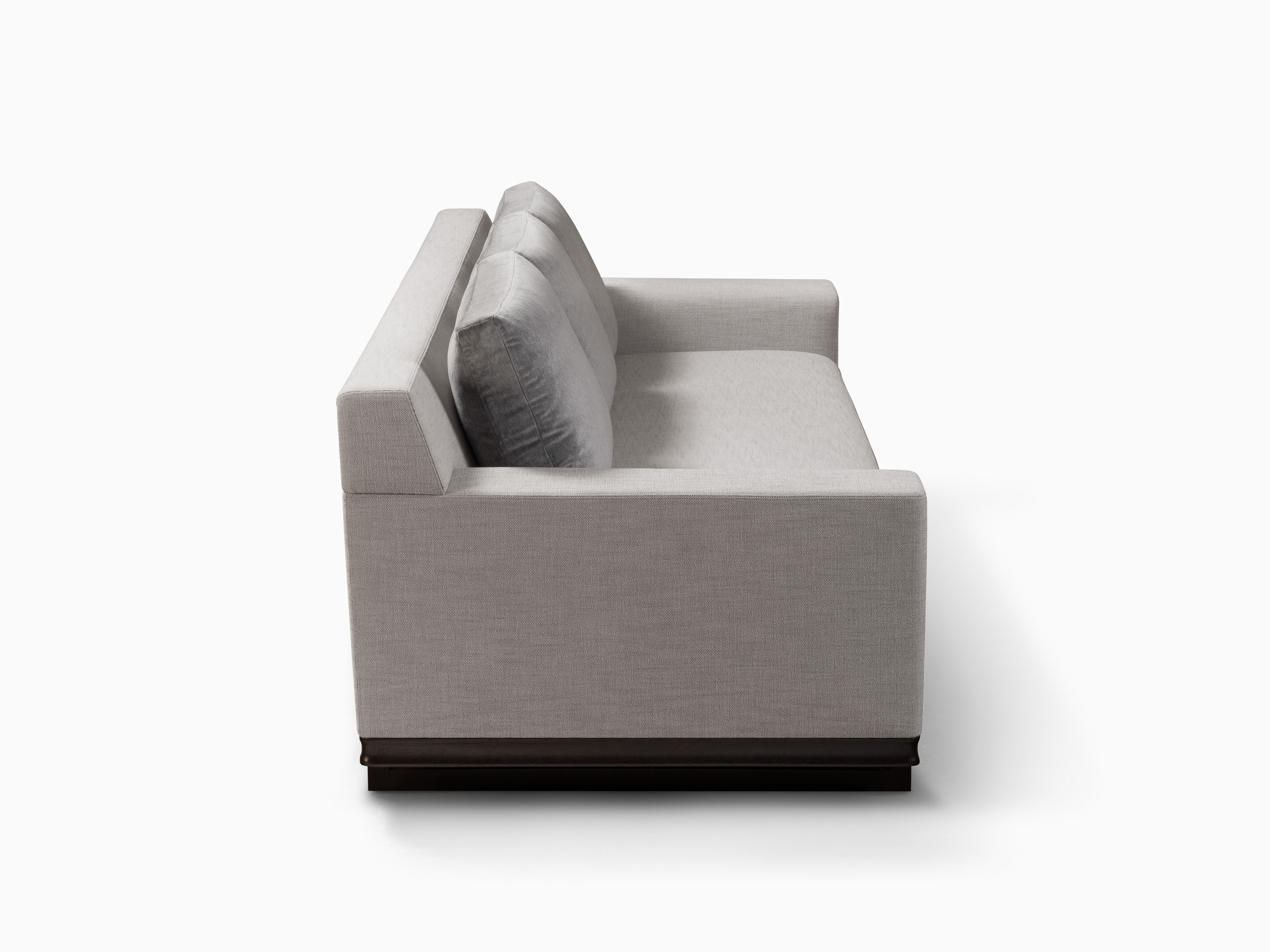 Inspired by the carved detail that was incorporated in the Flute Lounge Chair, the Flute sofa takes it a step further using the same detail at the base of each arm. From certain angles, the sofa appears to float over the floor. Each sofa has a single bench seat cushion with either three or four loose back cushions depending on the width chosen. The sofa is available in three standard sizes (86″, 99″ or 120″) with an oak or walnut base.