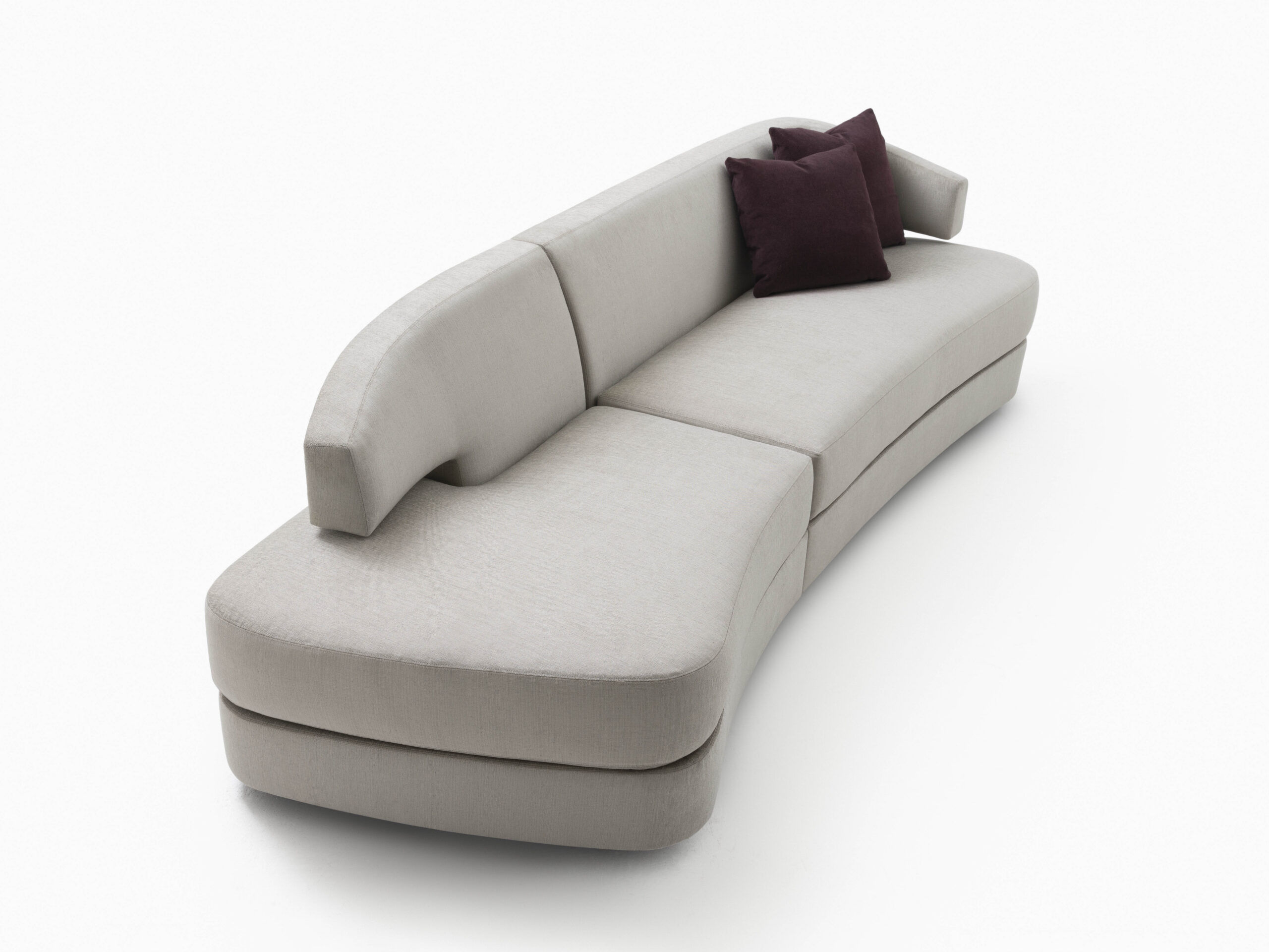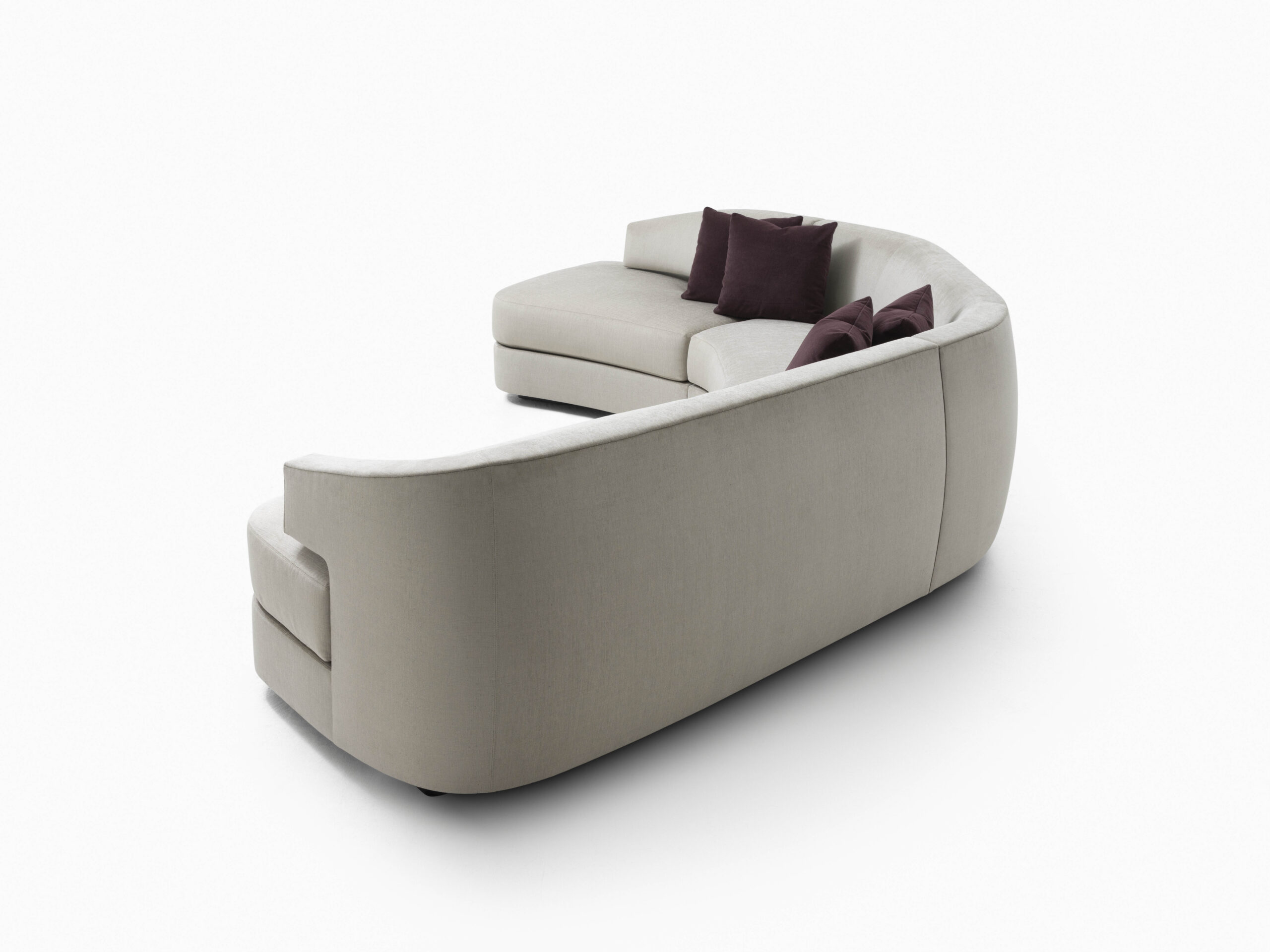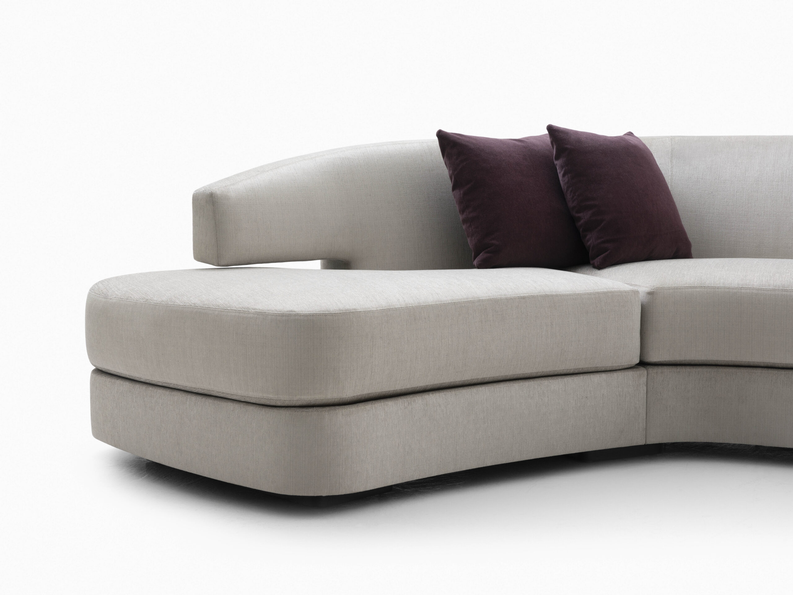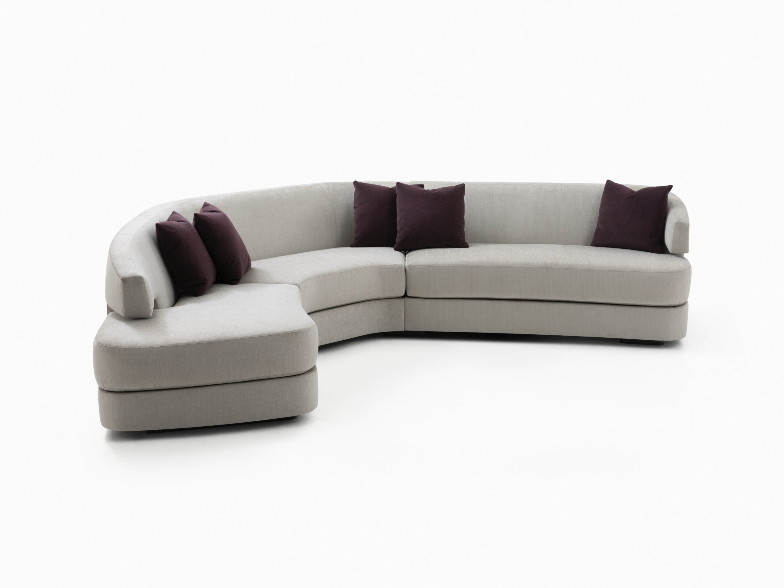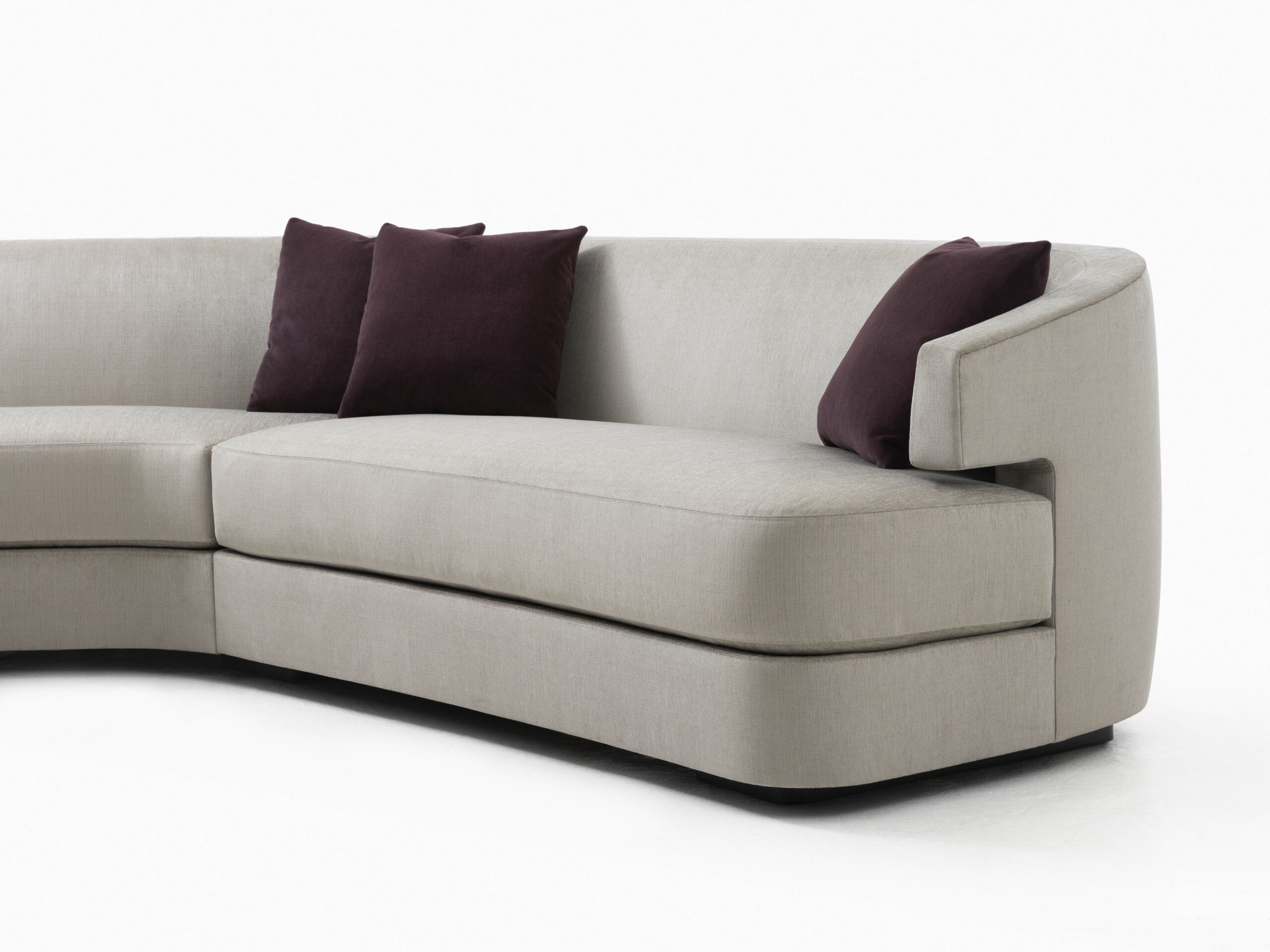 The Nimbus Sectional Sofa is an amorphous shaped upholstered piece. The name Nimbus references clouds and their irregular forms. There are three pieces that can be mixed and matched to create a variety of shapes and sizes. The base is recessed so that the sofa appears to float above the floor.