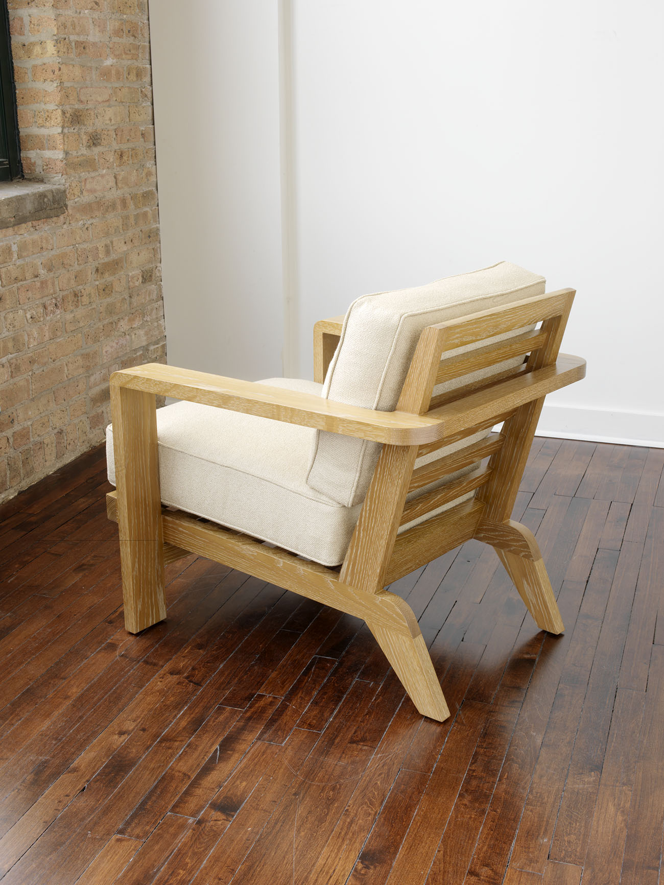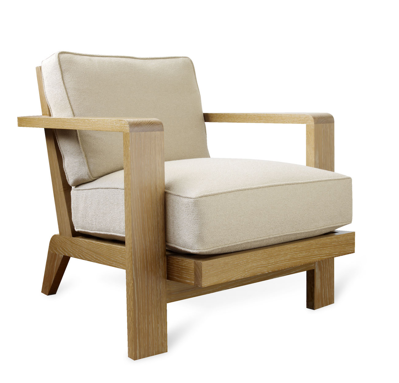 A find at the Paris flea market gave birth to the Oliver Lounge Chair, which has subtle references to Art Deco and Machine Age styling. Its exposed solid wood frame, available in oak or walnut, is made complete with loose down and foam seat and back cushions.