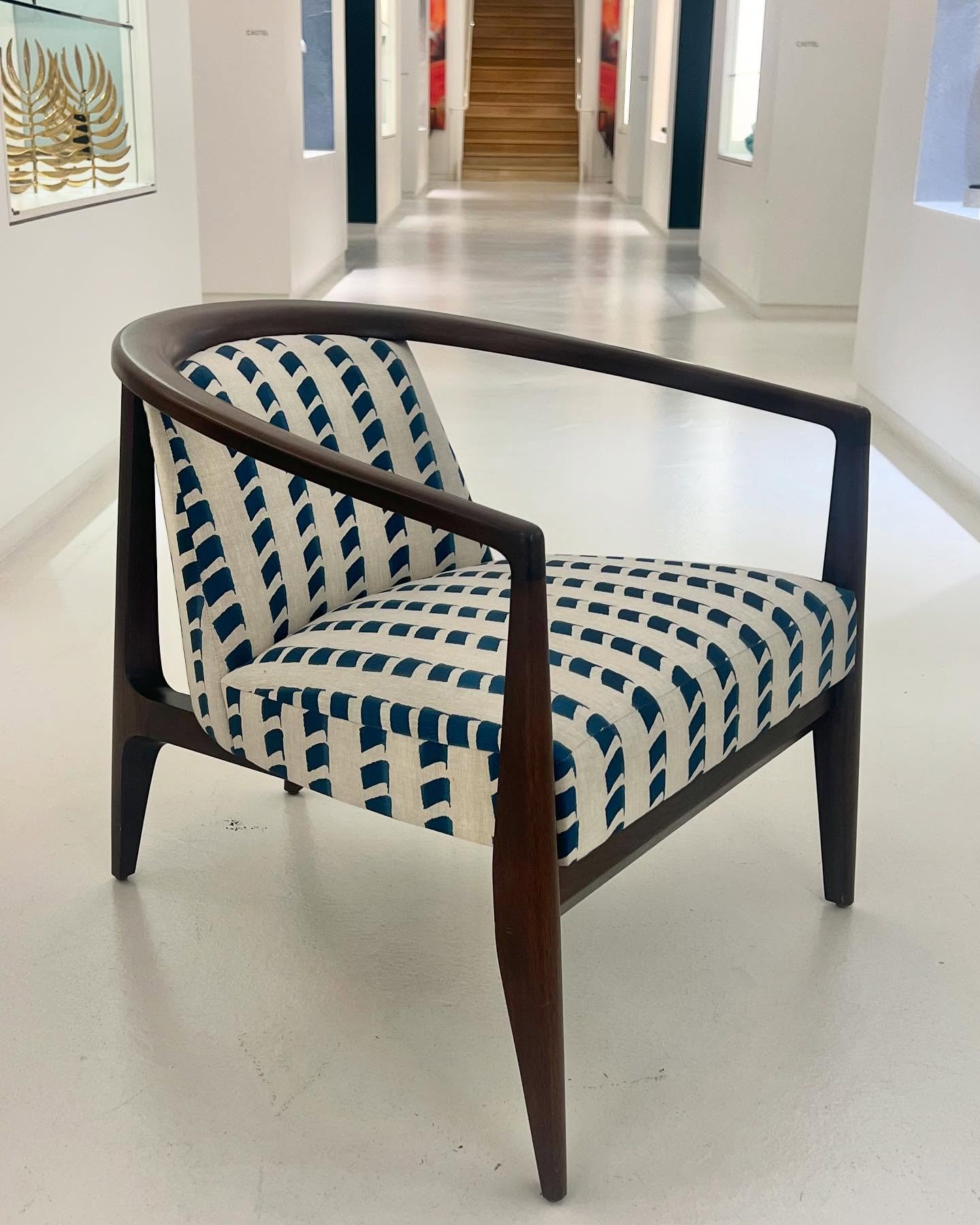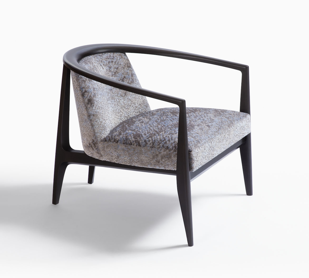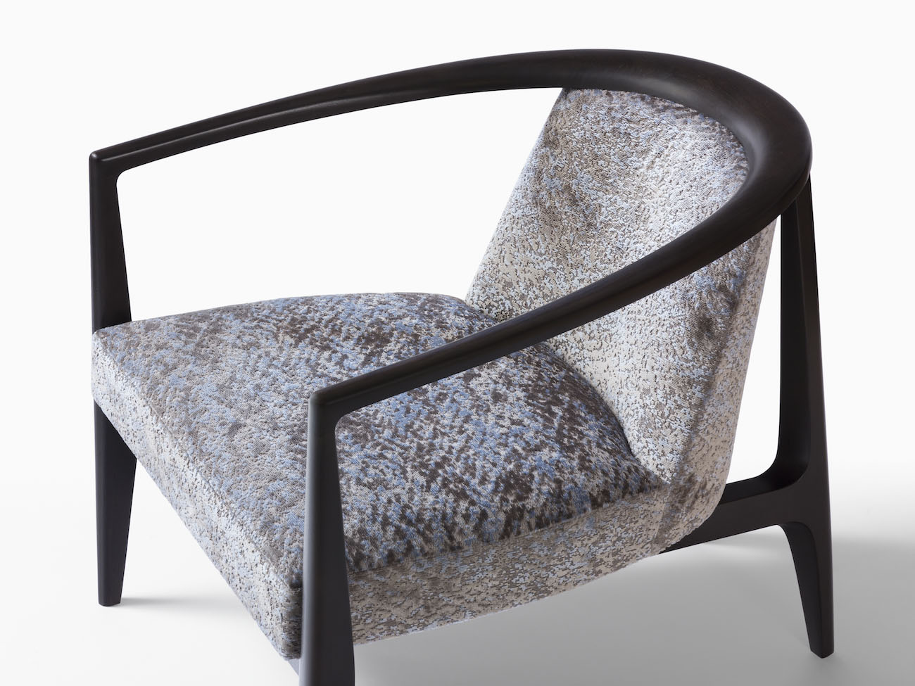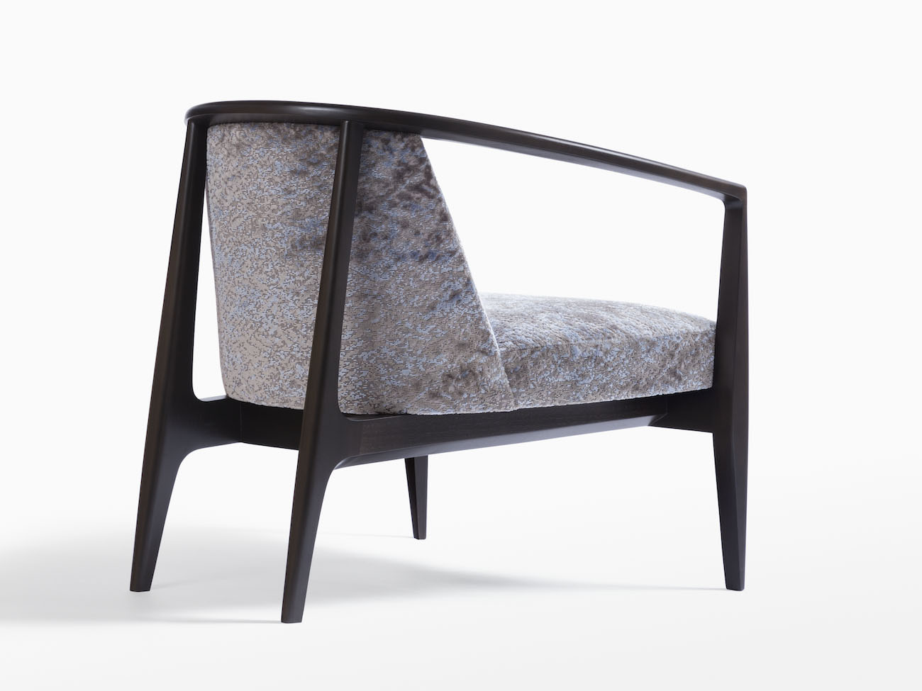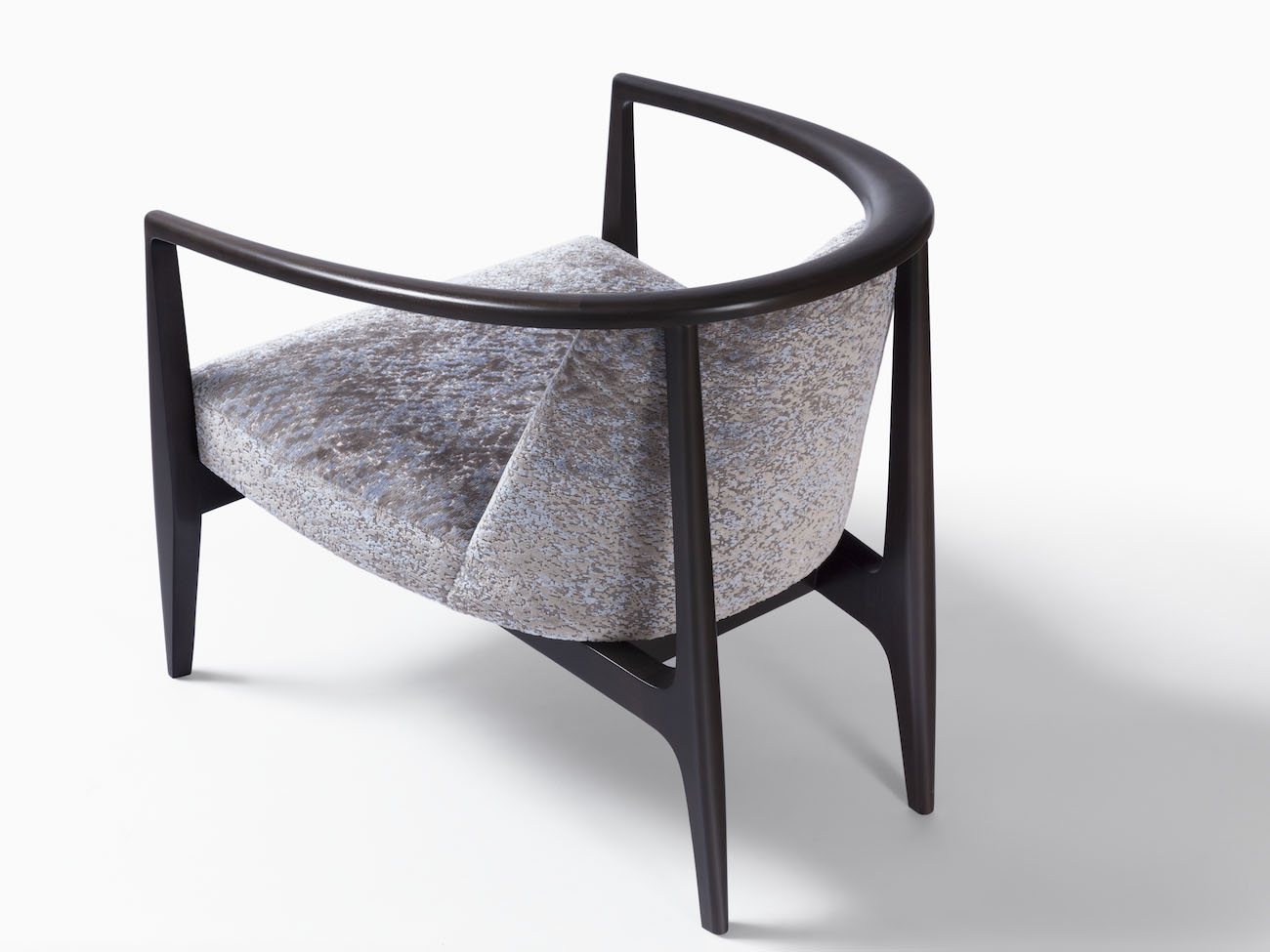 Sword-shaped arms twist like ribbons around a sleek seat in the midcentury inspired Sabre Club Chair. The svelte, sculpted solid wood frame, available in oak or walnut, envelops the upholstered body in strategically angled, embracing orbit. Here’s an elegant piece that adds eye-catching yet coolly assertive appeal anywhere it stands.